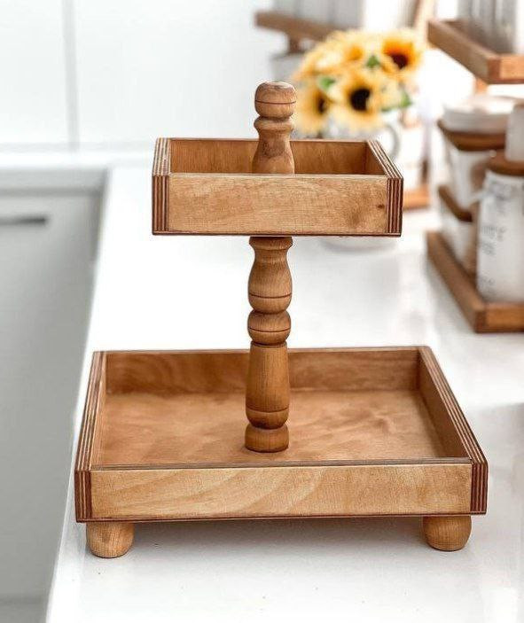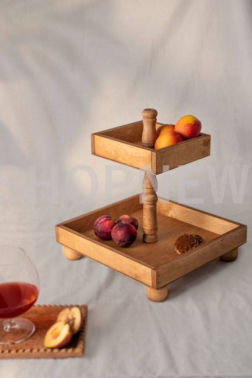 شیرینی خوری و استند دو طبقه مربع چوبی پارمیس