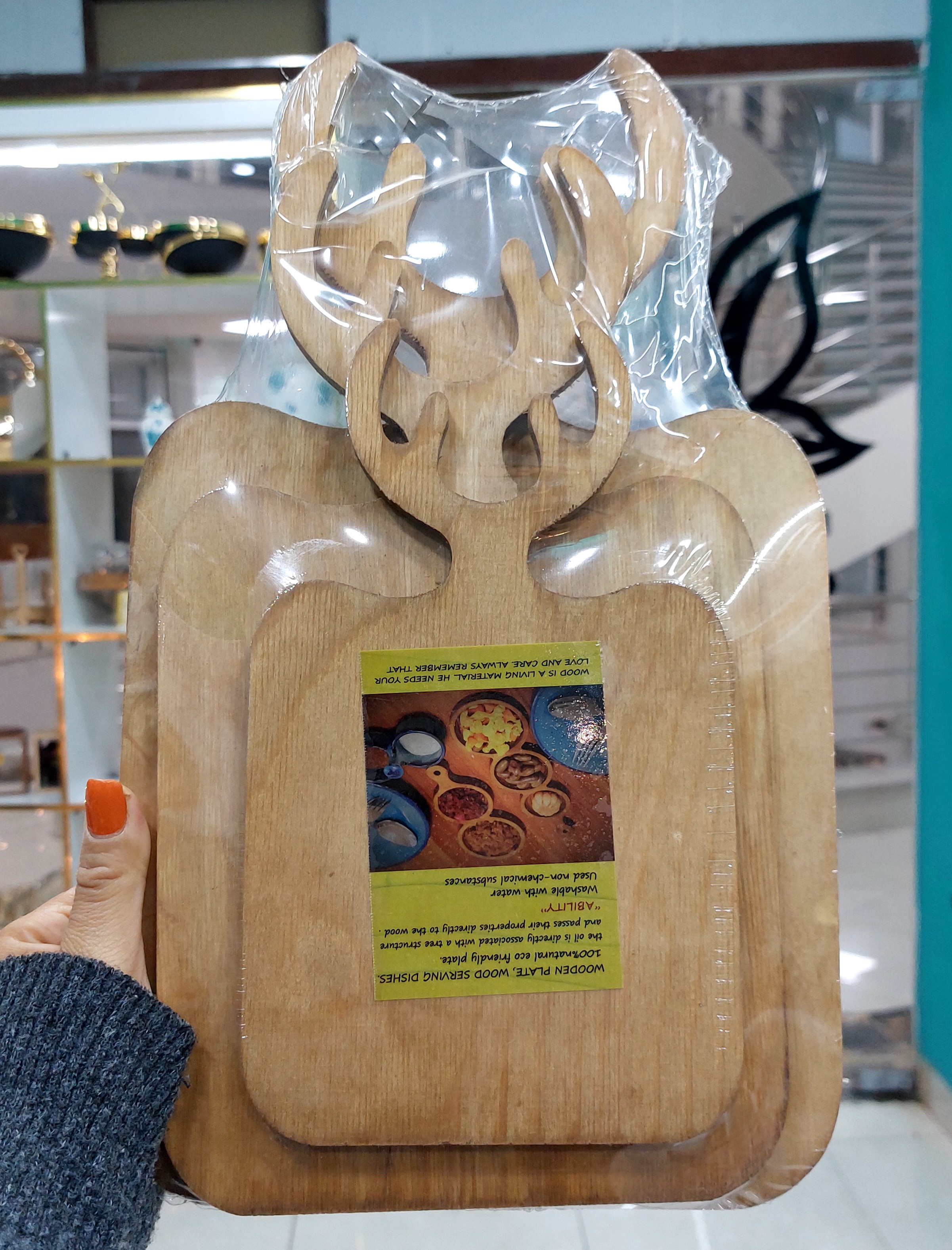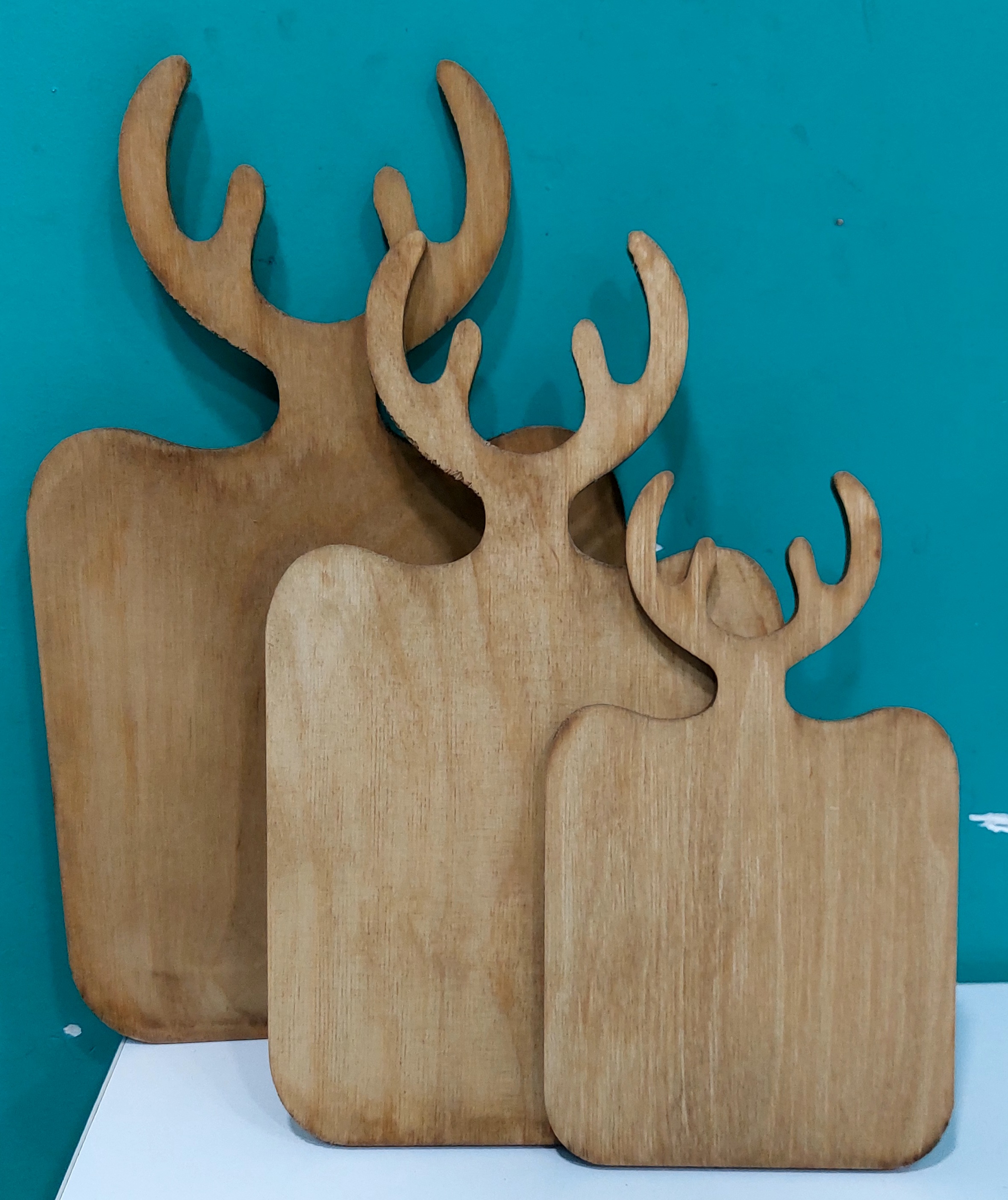 تخته سرو سه تایی طرح مربعی چوب روس قابل شستشو ضخامت ۸ میلی متر ابعاد تا شاخ از سایز بزرگ به ترتیب ۳۴_۳۰_۲۳ ابعاد بدون شاخ به ترتیب ۲۳_۲۰_۱۵