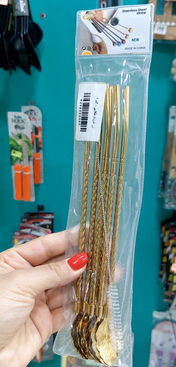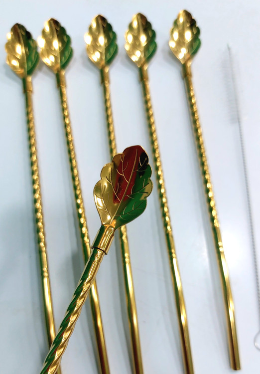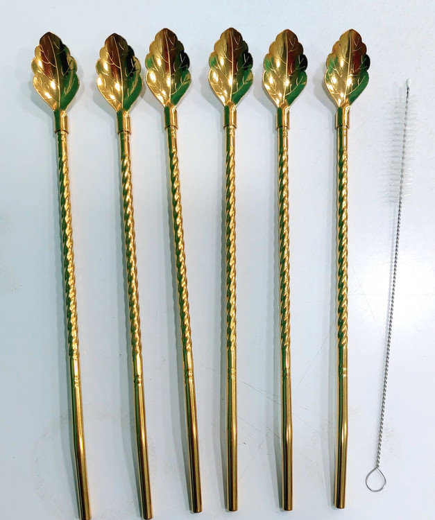 نی شربت قاشقی طلایی بهمراه فرچه شستشو