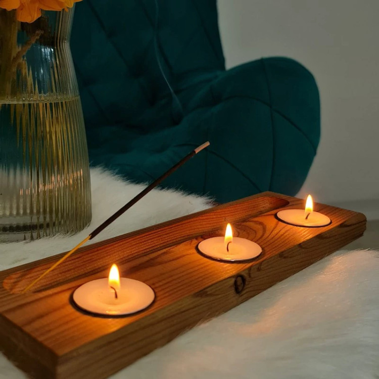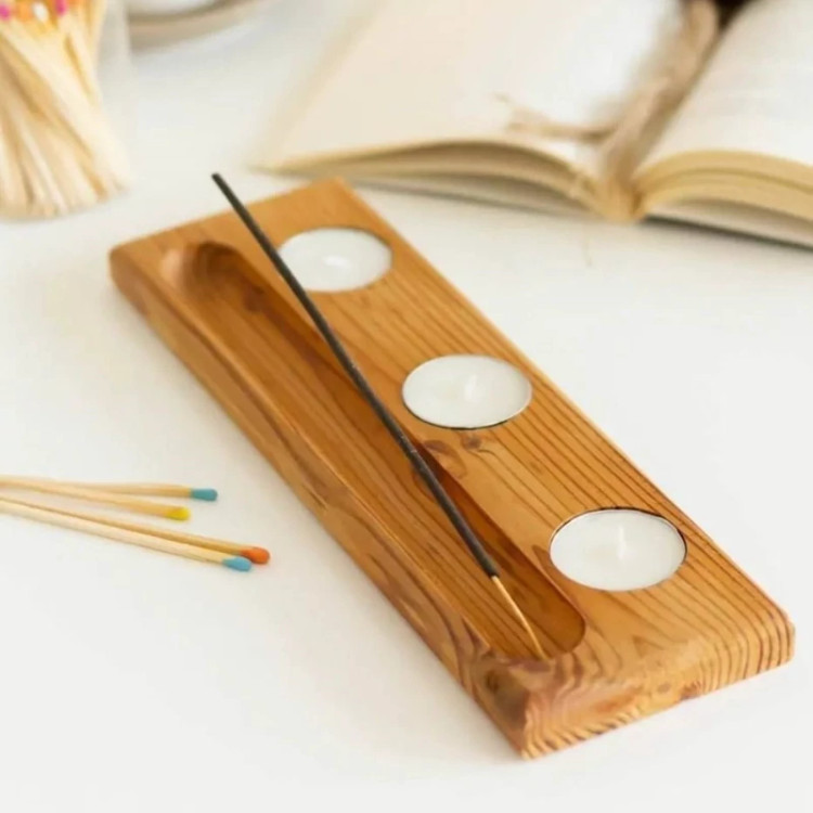 دارای 3 عدد شمع وارمر و یک عدد عود میباشد قابلیت قراردادن بر روی میز را دارد سوراخی در انتها برای قرار دادن عود دارد دارای فضایی برای خاکستر عود دارد مناسب برای هدیه دادن مناسب برای منزل، دفتر کار و…