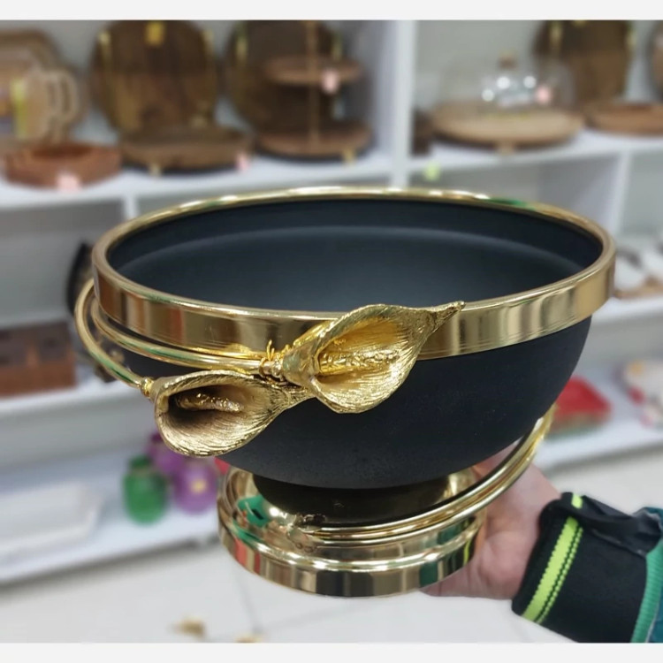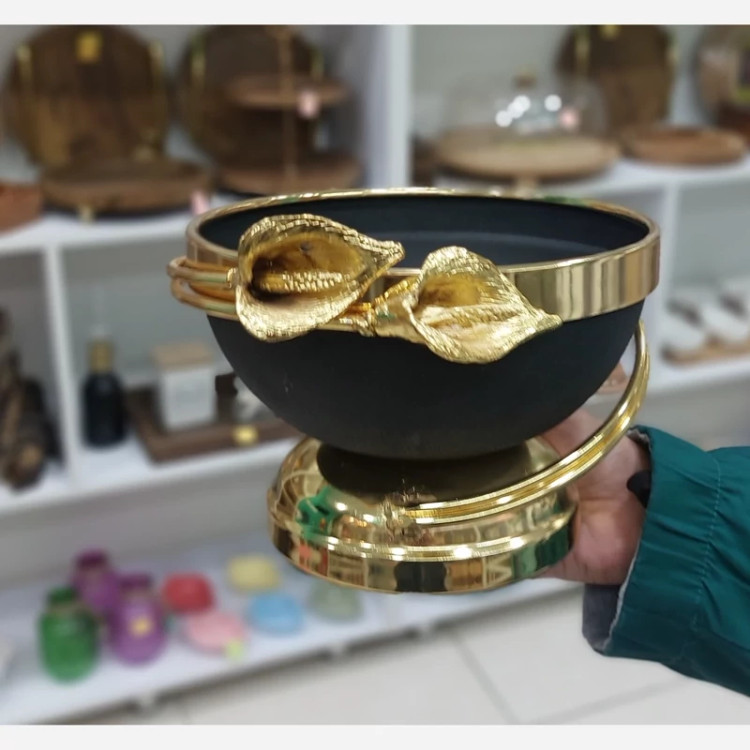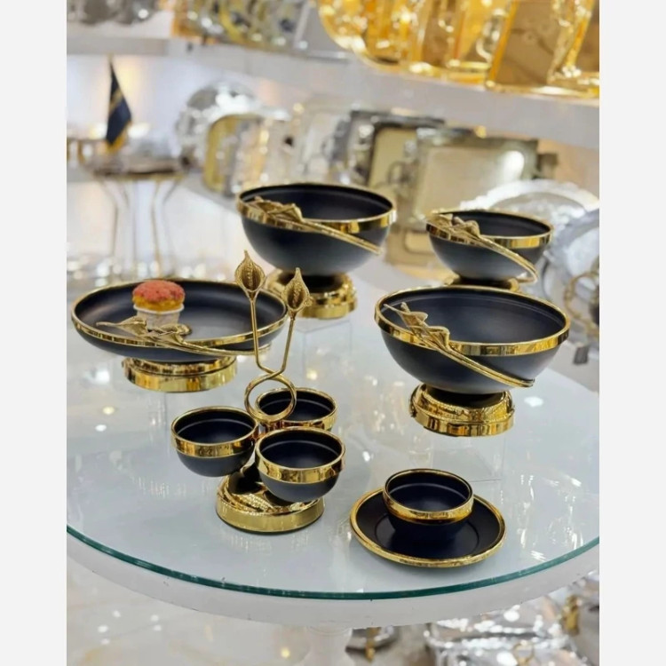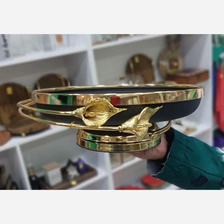 سرویس پذیرایی 5پارچه گل زنبق مشکی طلایی